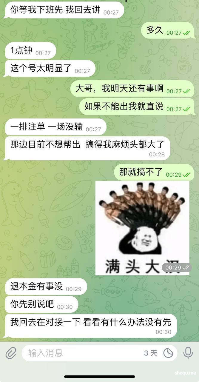 以为是风控组长,再加上我朋友我们也认识很久了,就相信他去注册了一个号,也没有上压。打完了告诉我各种原因出不了款。妈的,逗我玩儿呢?注单、账号要是没有任何问题,找他干吗?又不想担风险,又想分钱?合着跑来白嫖我来了!