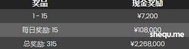 总奖金 ¥ 2,268,000 将于2024年10月29日22:00 (GMT+8)至2024年11月19日00:59(GMT+8)期间的每日锦标赛送出。