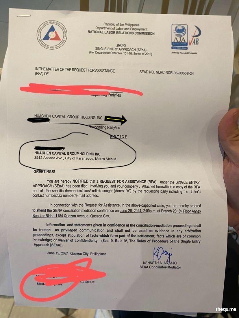 "这口气我是咽不下去的,我必须要去NLRC!" 这是当时收到人事反馈之后的想法,于是于6月26号参加仲裁会议;结果是大家没有谈成,你们甚至一毛钱都不答应给,华臣资本果然真的很厉害,实力够硬!不过不好意思这次你们遇到刺头了,这事没完,第一次仲裁会议上时候我就跟你们的人说过,这事要是没有一个满意的解决方案,没完,我会继续上诉,我会联系Raffy Tulfo (万国村事件发生的关键人物)和他的团队,我会去他们的媒体办公室;这事我是一点都不怕越闹越闹,我心里一点不虚,我做了在工作期间我已经该做的了!在菲律宾的华人公司里,某些领导你们不要永远觉得你们公司里的所有华人员工都会认哑巴亏的,员工永远是错的,领导永远对的!跟领导吵架就都是员工的错,都是员工的问题!简直是可笑!我就想问一句,一个岗位过去不到一年的期间内 换了4个员工,都是员工的问题?我跟这位领导只吵过这一次假,也是最后一次,因为我忍不了了,敢问他自己心里没数嘛?
