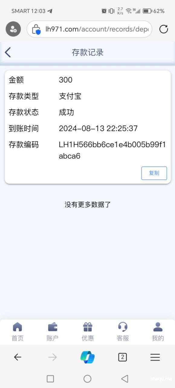 本人在菲做点小生意,唯一的爱好就是每天打点转转,今天经电报介绍去雷火平台, 充值300打麻2拉到1500提款半小时没到账去咨询客服,客服回复随机抽查请耐心等待结果!本人没领过任何彩金,也是第一次在雷火娱乐。赌友圈流行一句话,电子都卡的台子绝对是垃圾台子!本人在开云系列台,bm体育,球速体育等娱乐过很久,账号相同可查,重未发生过此类扎心的问题!忘广大网友远离黑平台,还网赌圈一份宁静,最后说一句,真的狠搞心态!