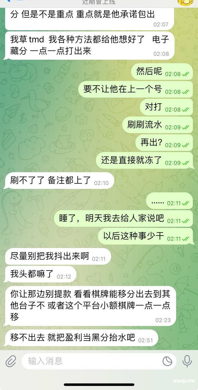 以为是风控组长,再加上我朋友我们也认识很久了,就相信他去注册了一个号,也没有上压。打完了告诉我各种原因出不了款。妈的,逗我玩儿呢?注单、账号要是没有任何问题,找他干吗?又不想担风险,又想分钱?合着跑来白嫖我来了!